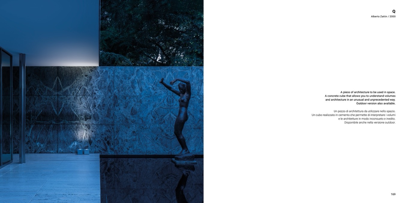 Un cubo realizzato in cemento che permette di interpretare i volumi