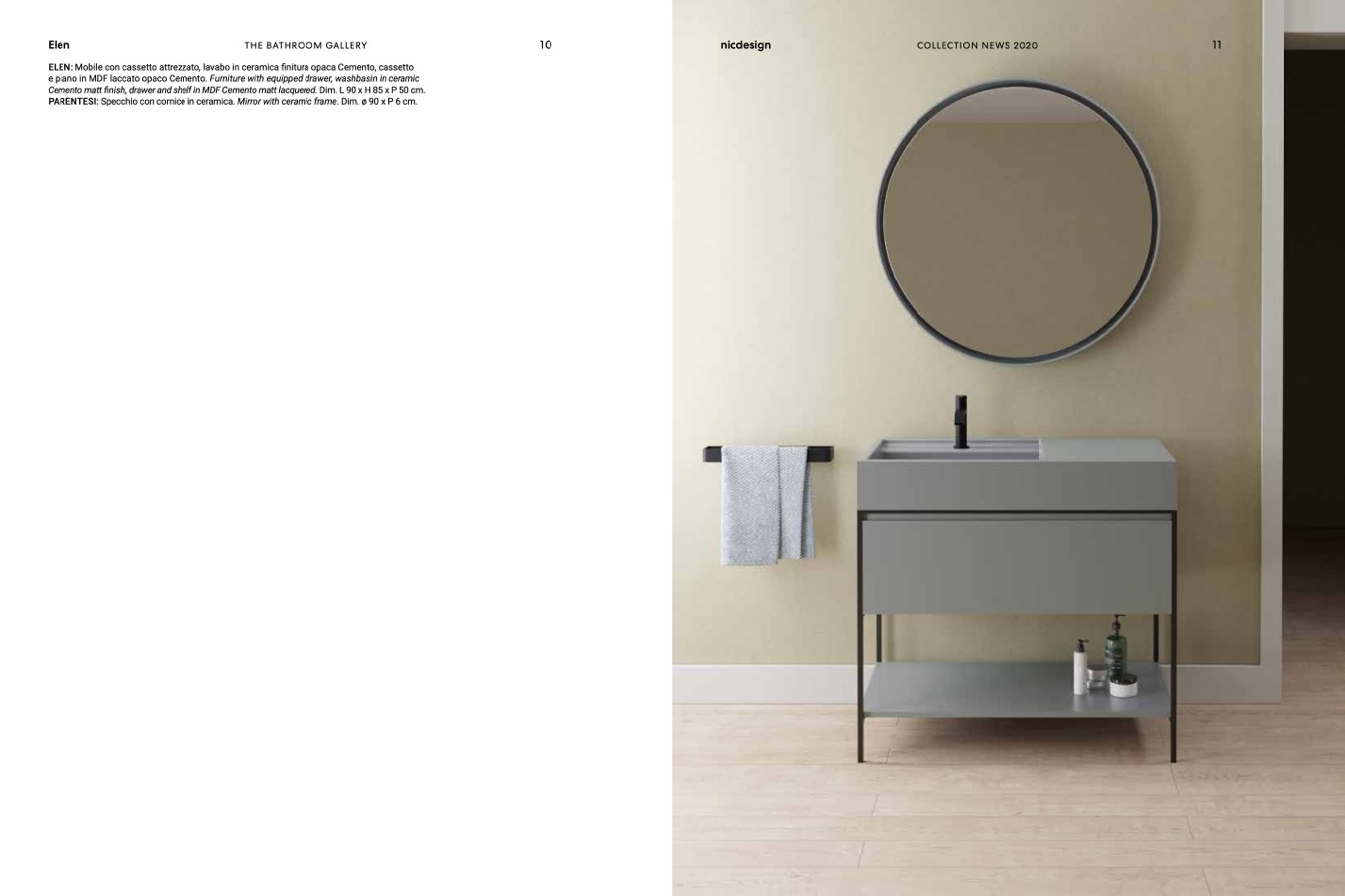 ELEN: Mobile con cassetto attrezzato, lavabo in ceramica finitura opaca Cemento, cassetto
