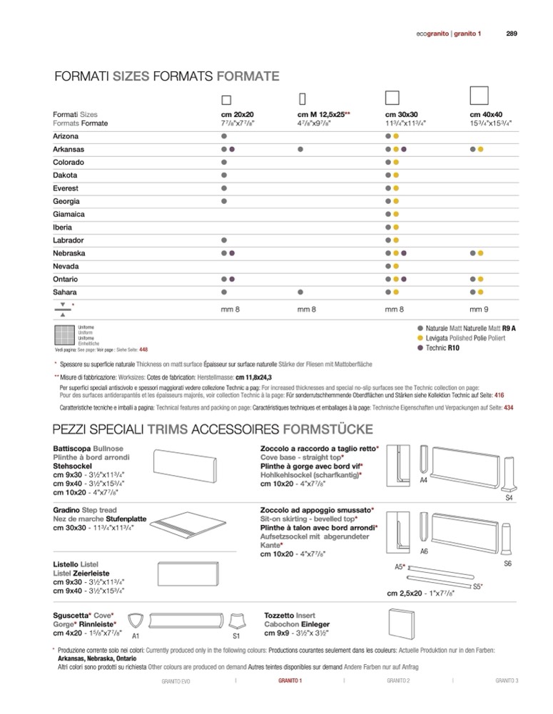 * SpessoresusuperficienaturaleThicknessonmattsurfaceÉpaisseursursurfacenaturelleStärkederFliesenmitMattoberfläche
