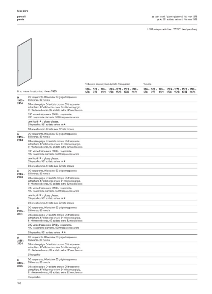 L 320 solo pannello fisso / W 320 fixed panel only