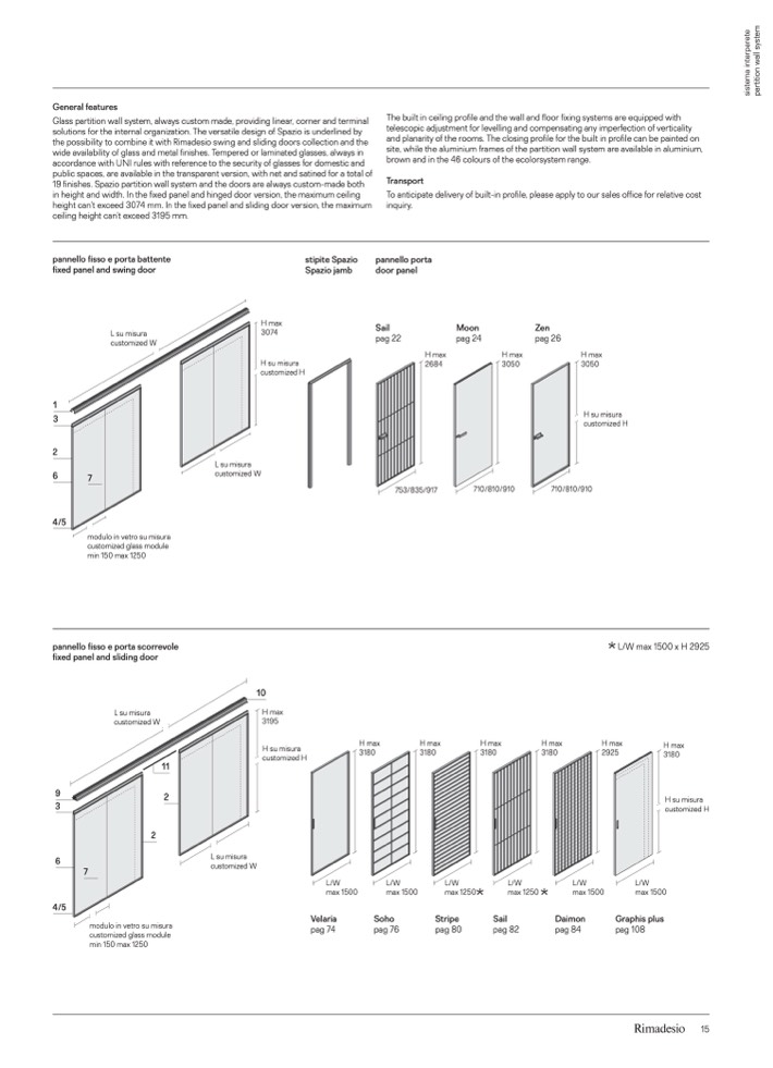 19 finishes. Spazio partition wall system and the doors are always custom-made both