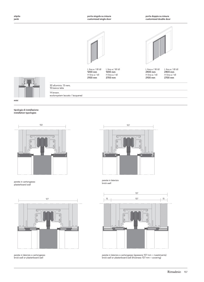 parete in laterizio o cartongesso (spessore 107 mm + rivestimento)