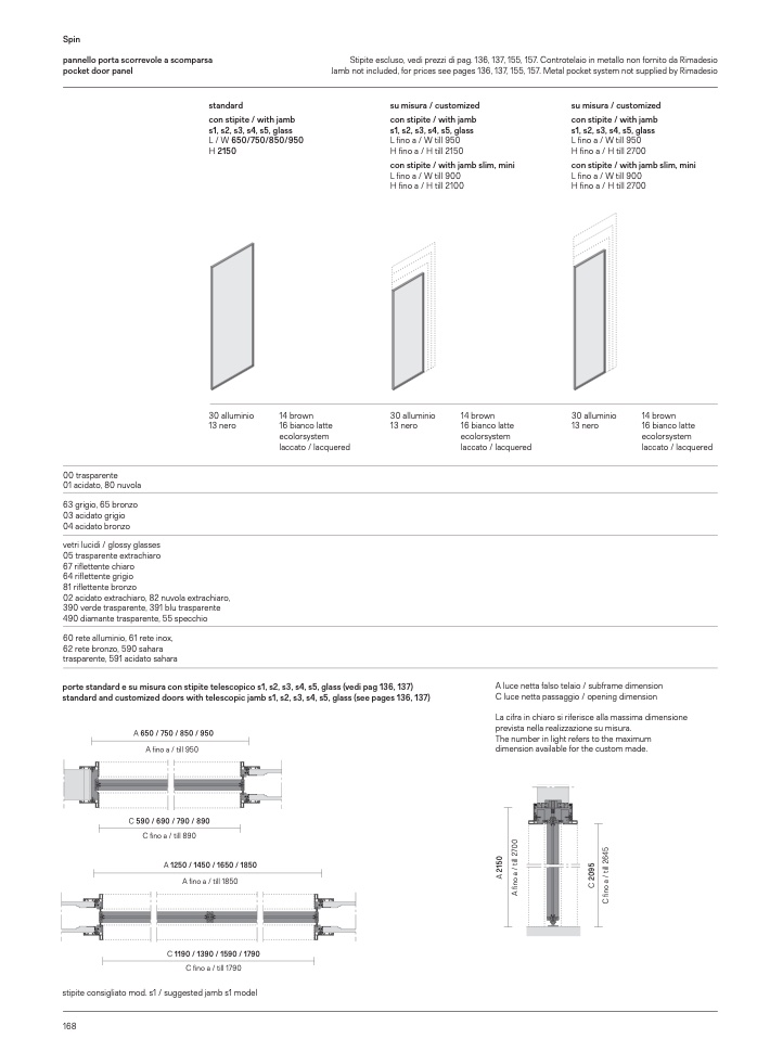 porte standard e su misura con stipite telescopico s1, s2, s3, s4, s5, glass (vedi pag 136, 137)