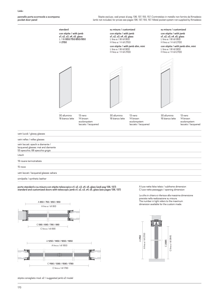 porte standard e su misura con stipite telescopico s1, s2, s3, s4, s5, glass (vedi pag 136, 137)
