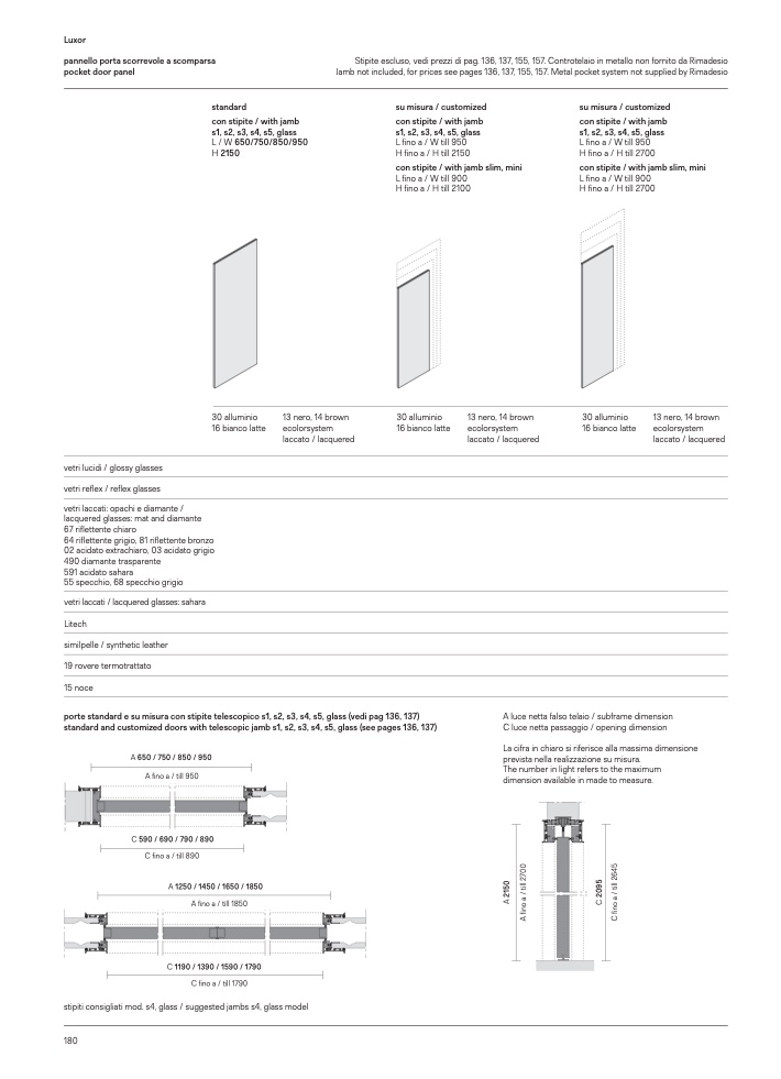 porte standard e su misura con stipite telescopico s1, s2, s3, s4, s5, glass (vedi pag 136, 137)