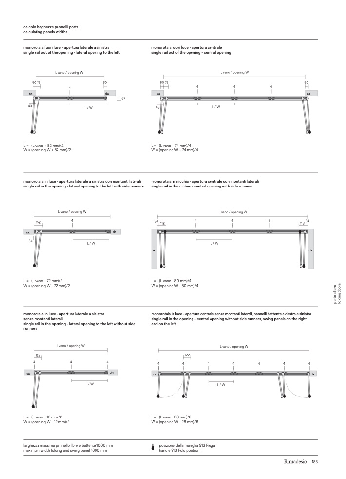 monorotaia in luce - apertura centrale senza montanti laterali, pannelli battente a destra e sinistra