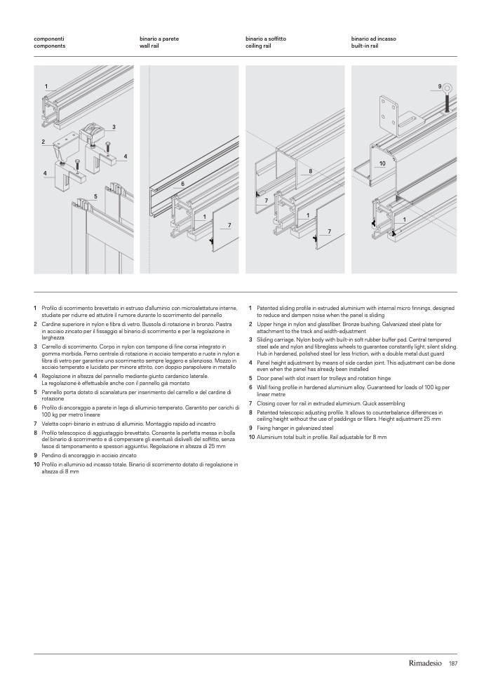 10 Profilo in alluminio ad incasso totale. Binario di scorrimento dotato di regolazione in