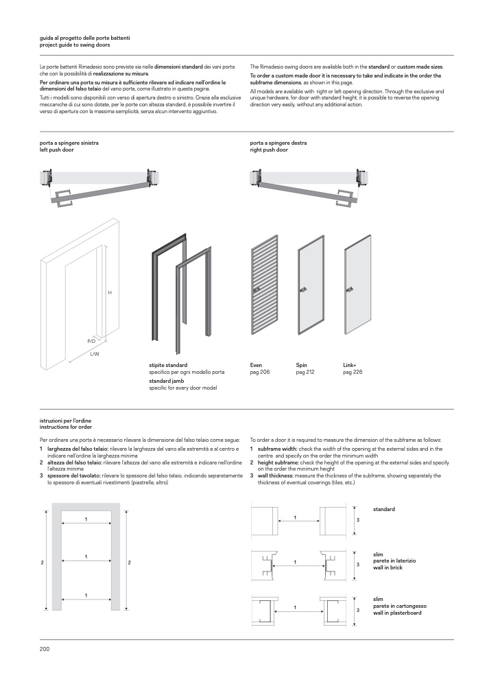 Le porte battenti Rimadesio sono previste sia nelle dimensioni standard dei vani porta
