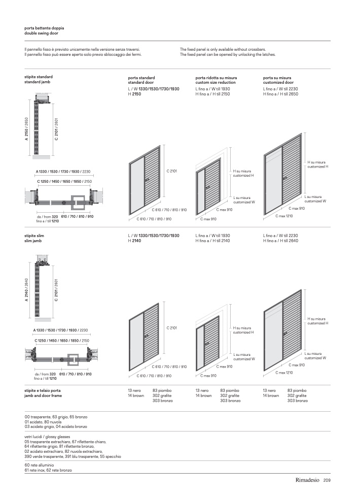 Il pannello fisso è previsto unicamente nella versione senza traversi.