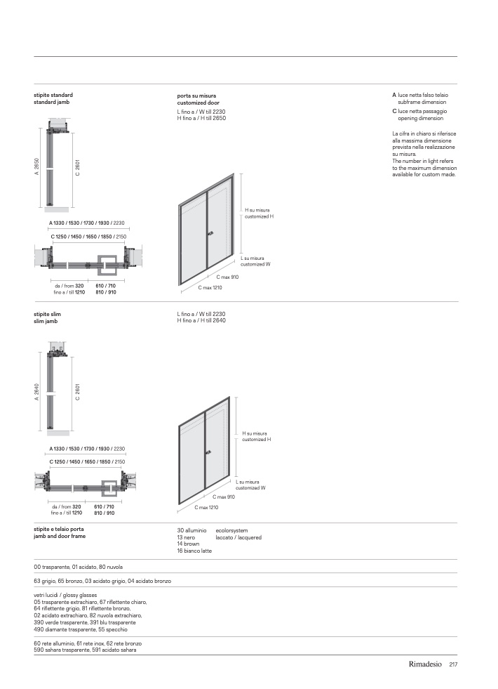 63 grigio, 65 bronzo, 03 acidato grigio, 04 acidato bronzo