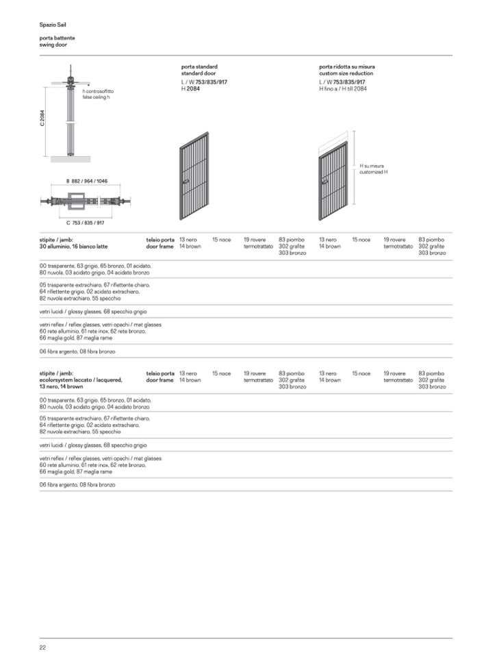 00 trasparente, 63 grigio, 65 bronzo, 01 acidato,