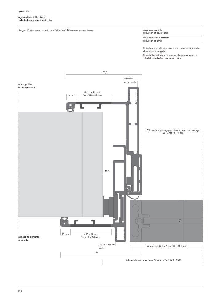 C luce netta passaggio / dimension of the passage