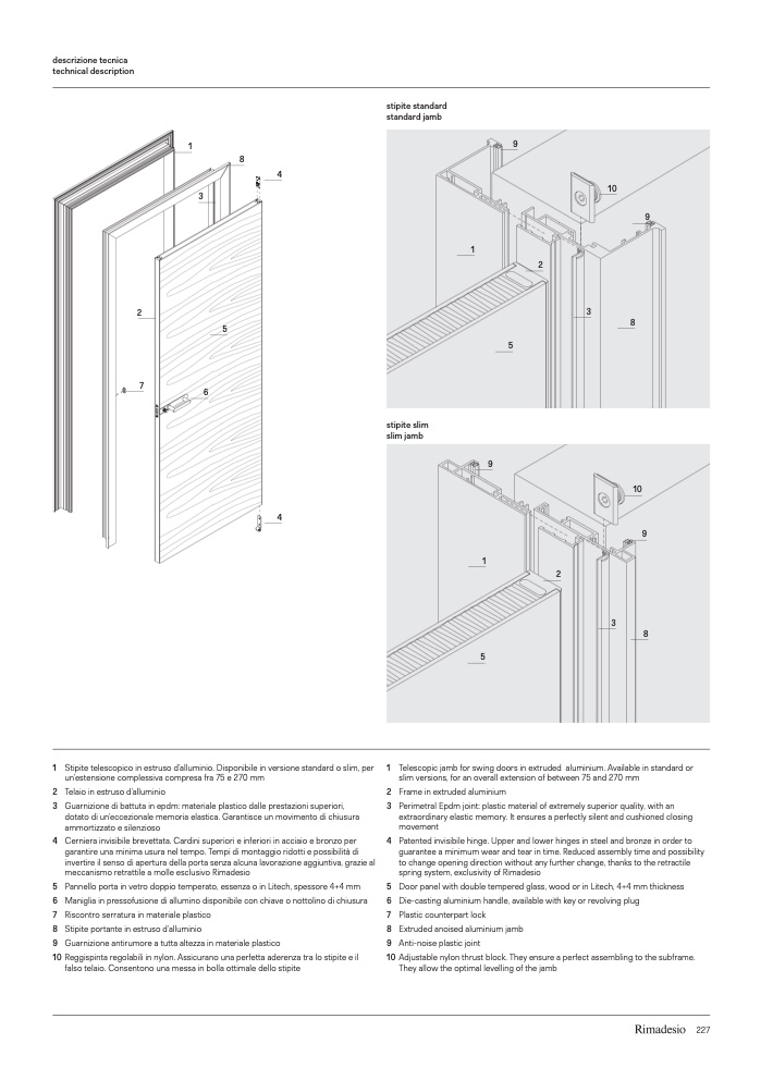 1 Telescopic jamb for swing doors in extruded aluminium. Available in standard or