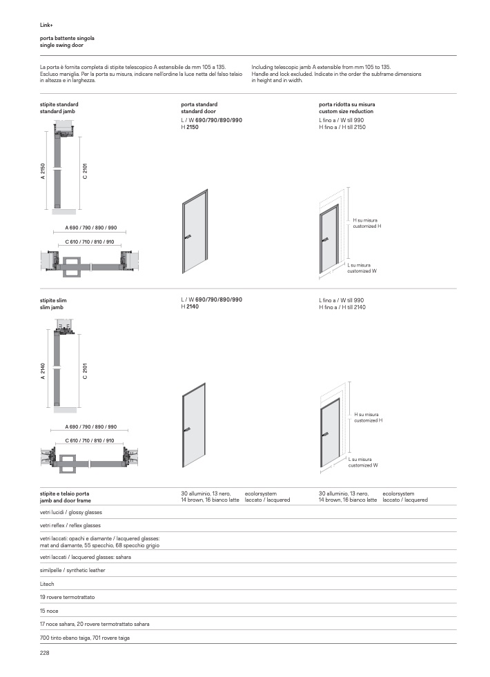 Including telescopic jamb A extensible from mm 105 to 135.