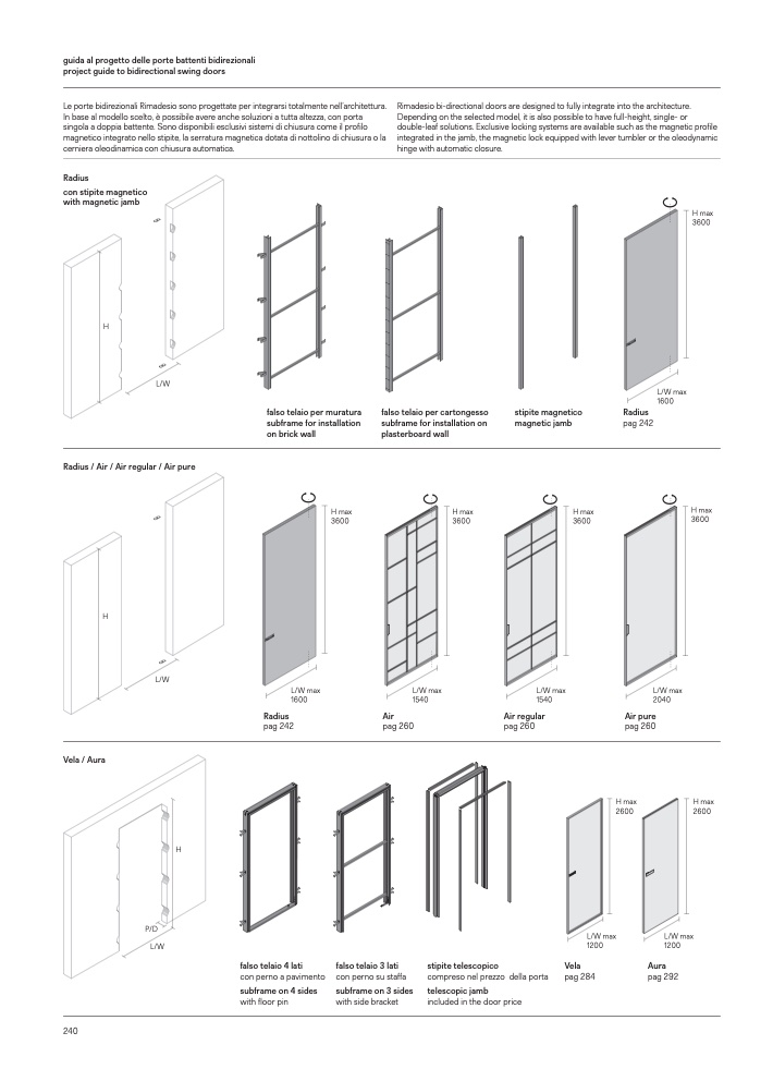 double-leaf solutions. Exclusive locking systems are available such as the magnetic profile
