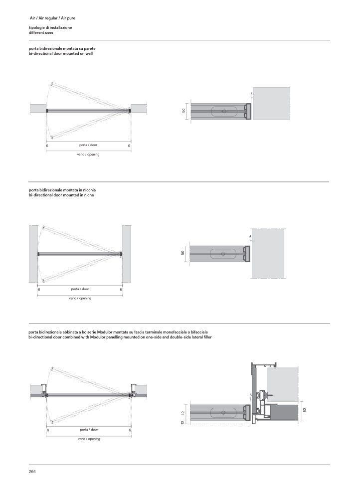 porta bidirezionale abbinata a boiserie Modulor montata su fascia terminale monofacciale o bifacciale
