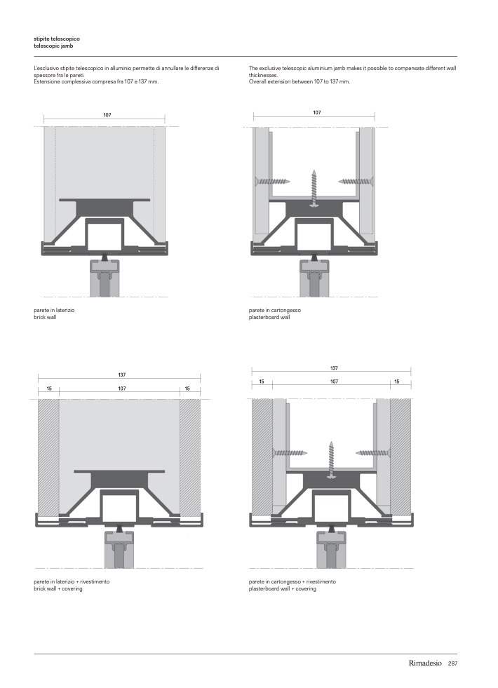 L’esclusivo stipite telescopico in alluminio permette di annullare le differenze di