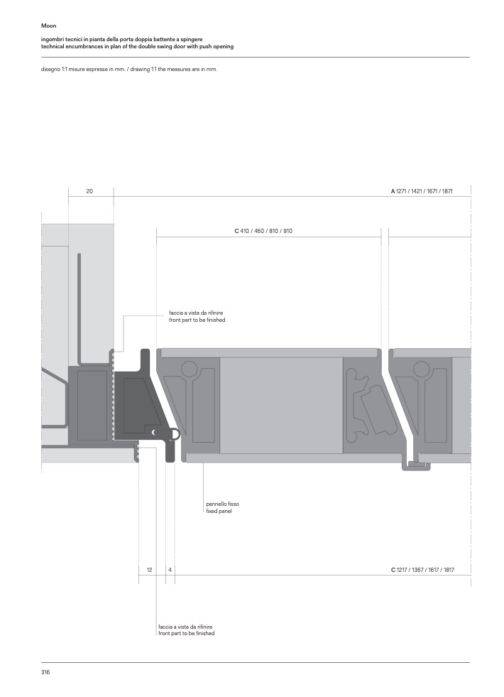 ingombri tecnici in pianta della porta doppia battente a spingere