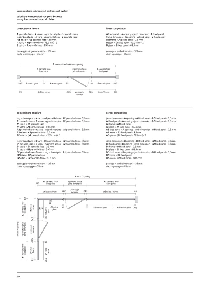 A pannello fisso = A vano - ingombro stipite - B pannello fisso