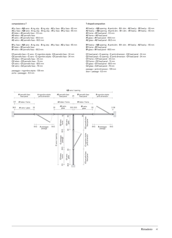 C1 pannello fisso = C vano - C ingombro stipite - C2 pannello fisso - 34 mm