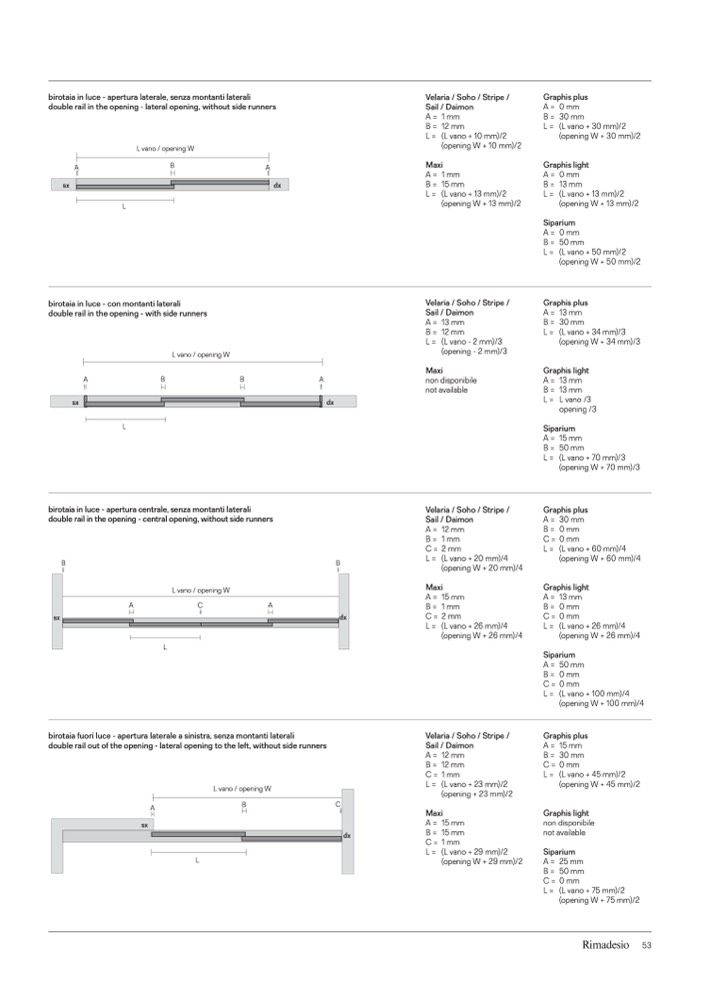 double rail in the opening - lateral opening, without side runners