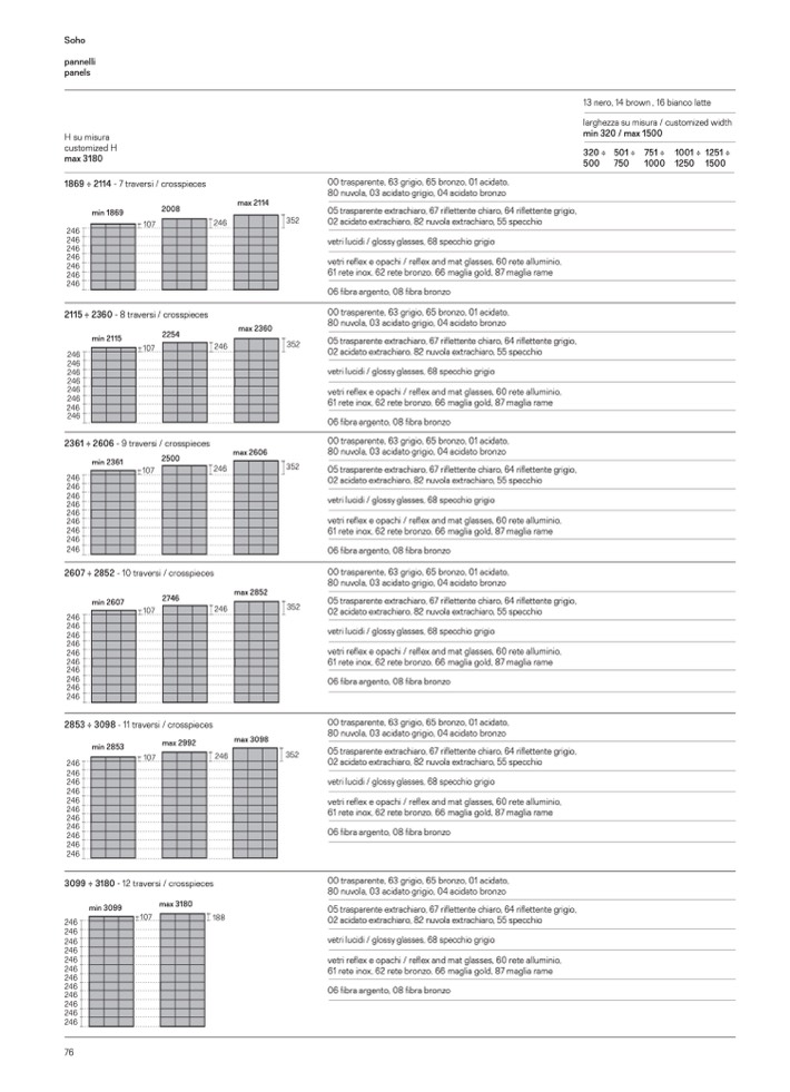 vetri reflex e opachi / reflex and mat glasses, 60 rete alluminio,