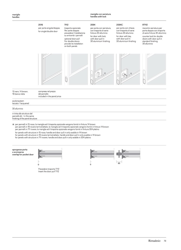 for panels with structure in 711 rovere, handle and door pull in only avaible in 304 platino