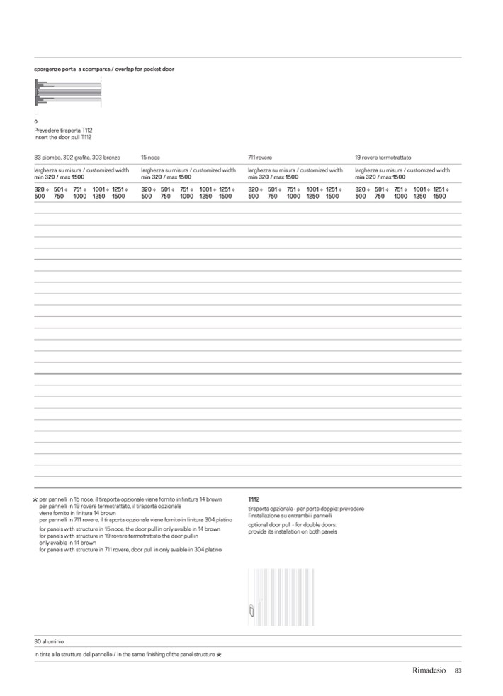 for panels with structure in 711 rovere, door pull in only avaible in 304 platino