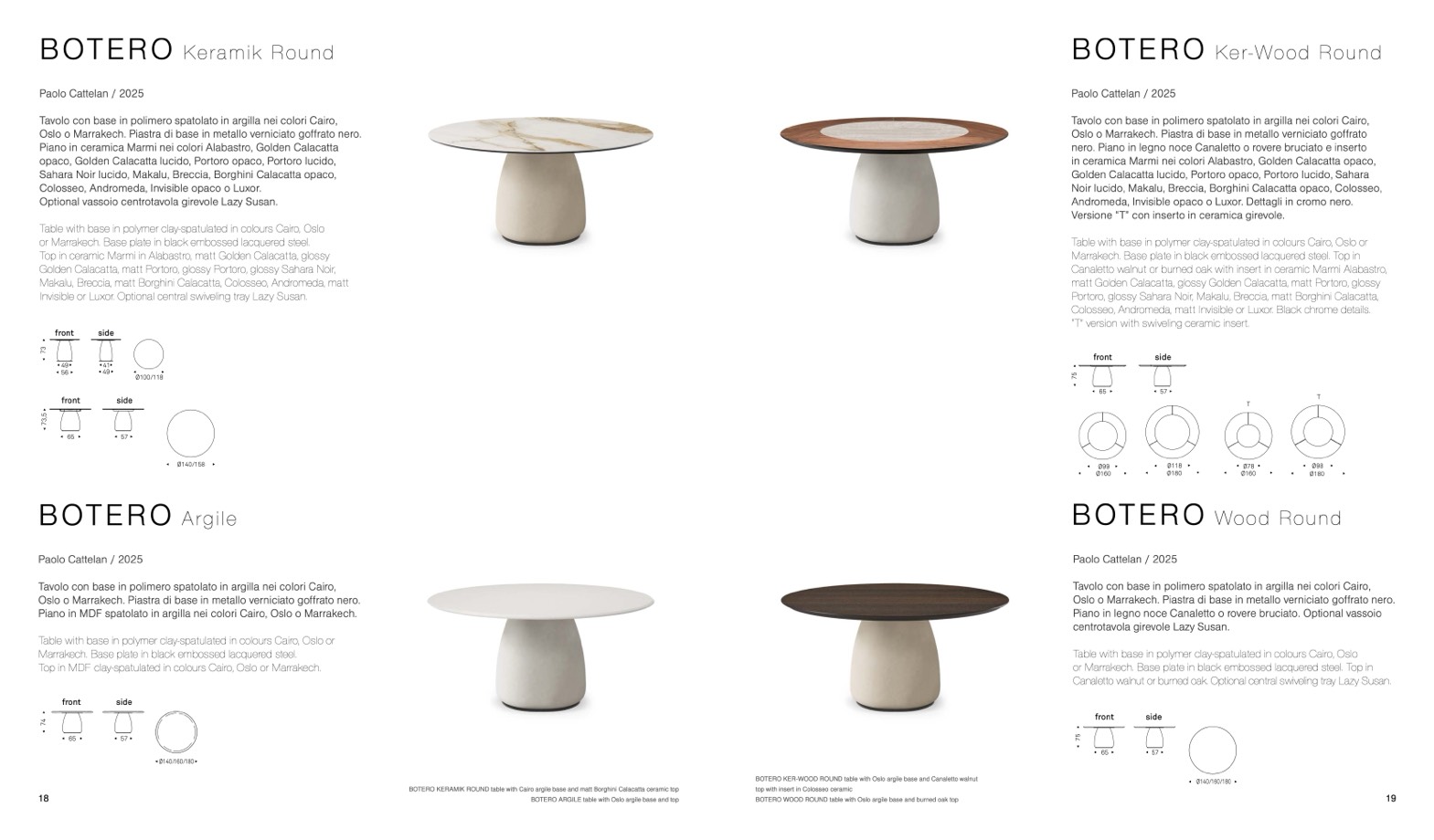 BOTERO KERAMIK ROUND table with Cairo argile base and matt Borghini Calacatta ceramic top