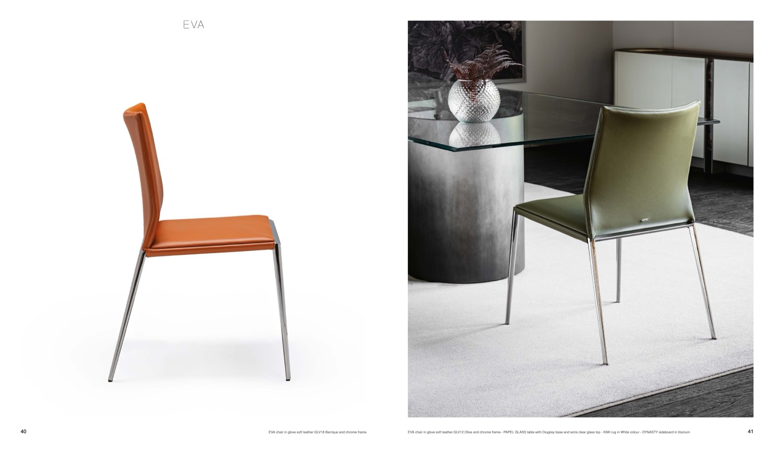 EVA chair in glove soft leather GLV18 Barrique and chrome frame
