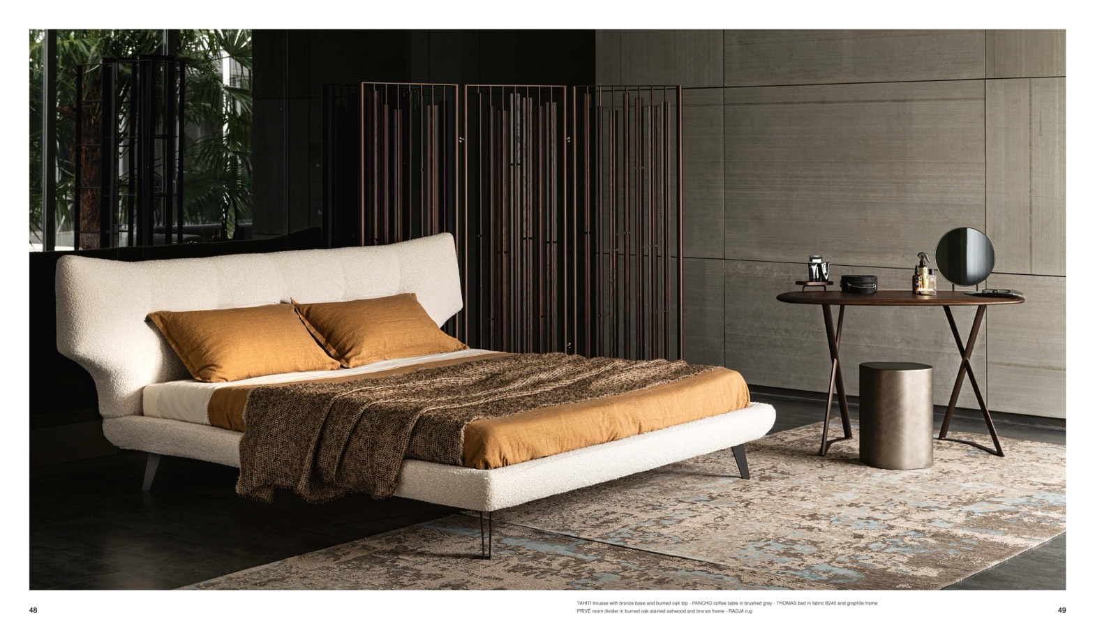 É room divider in burned oak stained ashwood and bronze frame - RADJA rug