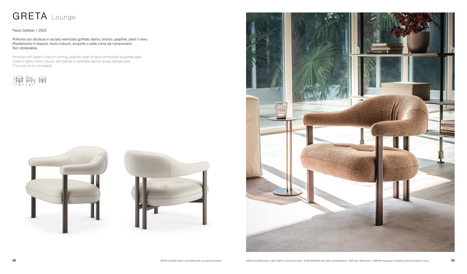 GRETA LOUNGE chairs in soft leather 948 Lino and bronze frame
