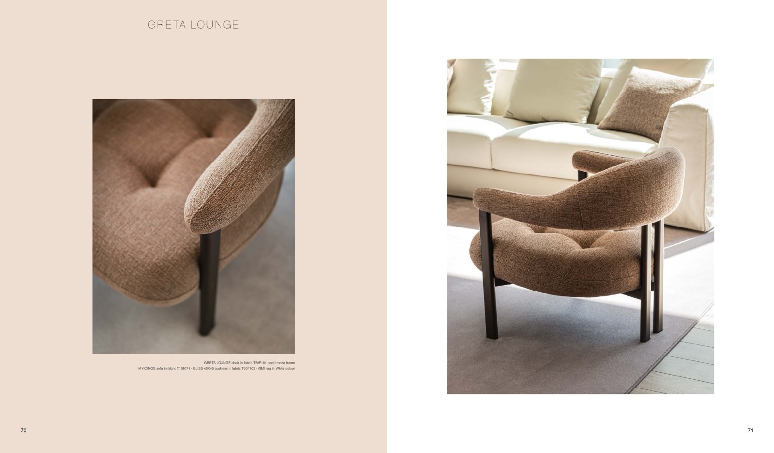 GRETA LOUNGE chair in fabric T60F101 and bronze frame