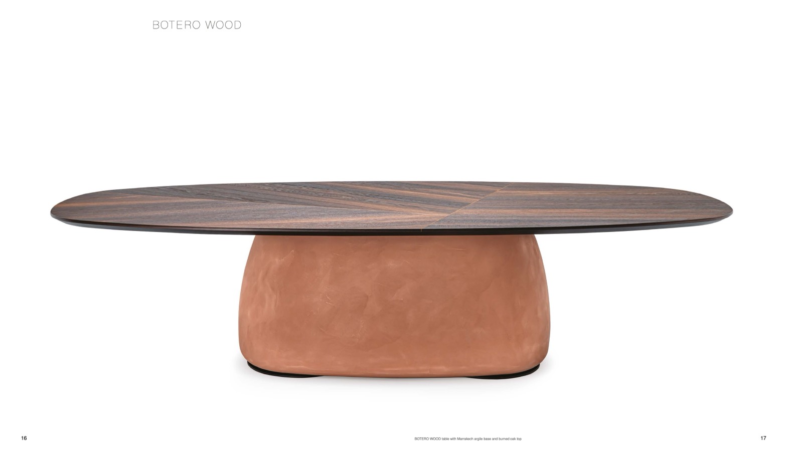 BOTERO WOOD table with Marrakech argile base and burned oak top