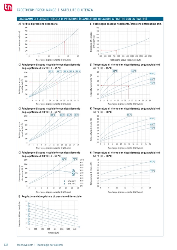 B) Fabbisogno di acqua riscaldante/pressione differenziale prim.