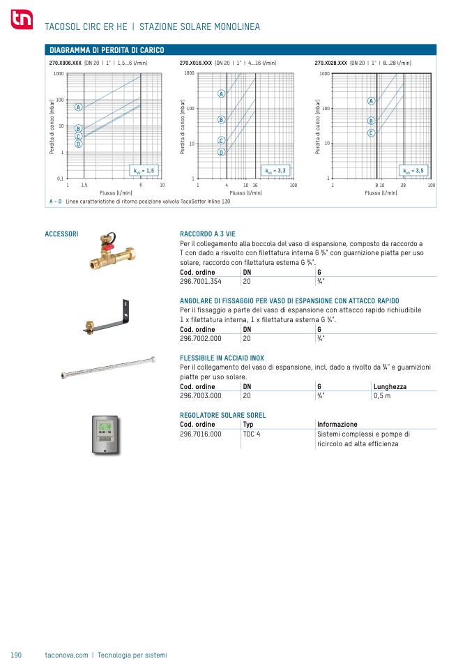 Linee caratteristiche di ritorno posizione valvola TacoSetter Inline 130