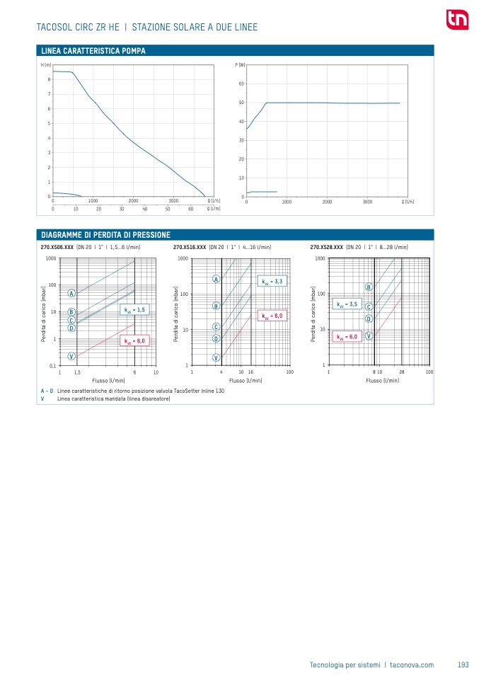 Linee caratteristiche di ritorno posizione valvola TacoSetter Inline 130