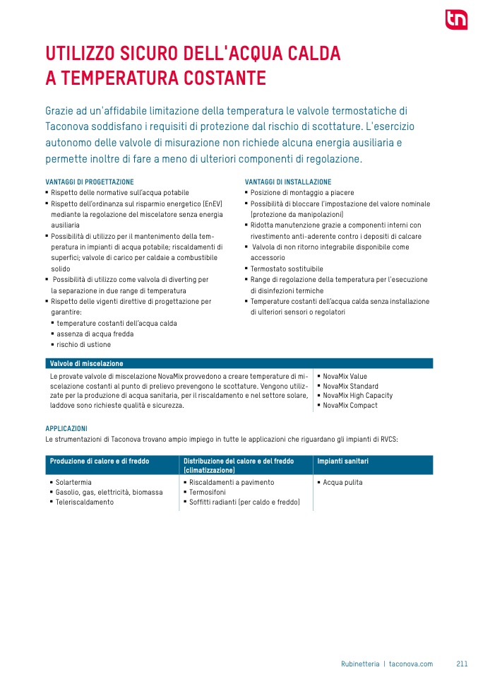 Le provate valvole di miscelazione NovaMix provvedono a creare temperature di mi-