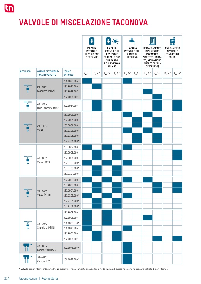 * Valvole di non ritorno integrate (negli impianti di riscaldamento di super