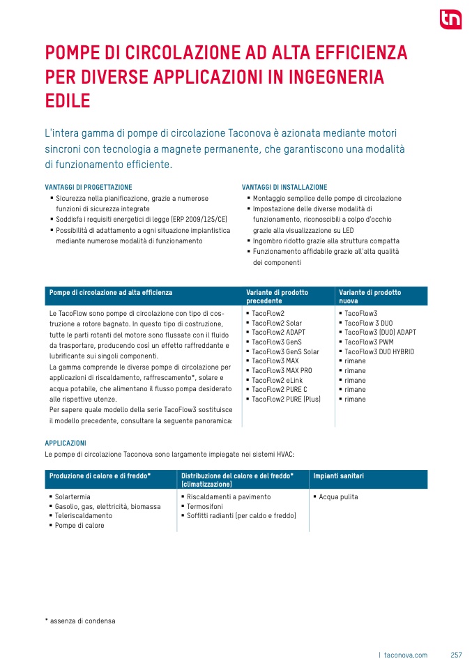 Le TacoFlow sono pompe di circolazione con tipo di cos-