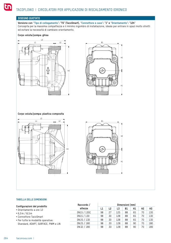 Versione con “Tipo di collegamento": "TS" (TacoSmart), “Connettore e cavo": "1” e “Orientamento": "12h"