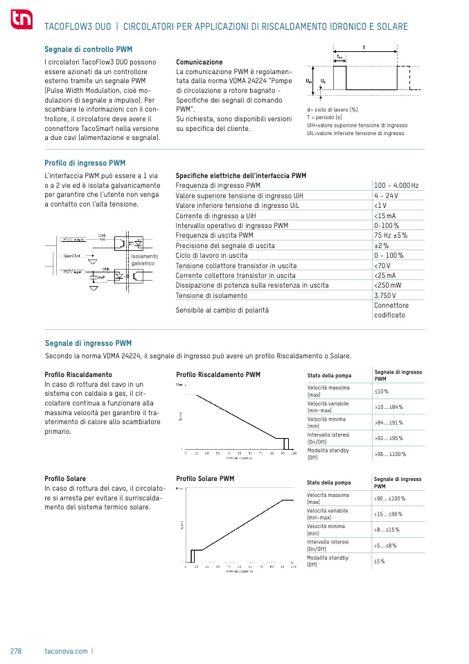 According to VDMA 24224 the input signal can have a Heating or Solar pro