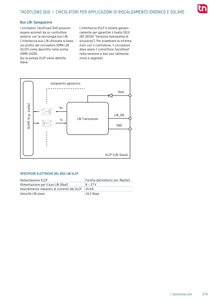 SPECIFICHE ELETTRICHE DEL BUS LIN VLCP