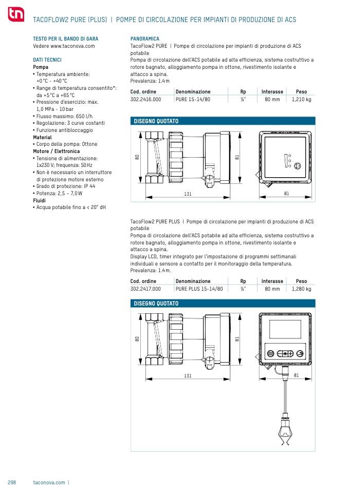 TacoFlow2 PURE PLUS | Pompe di circolazione per impianti di produzione di ACS