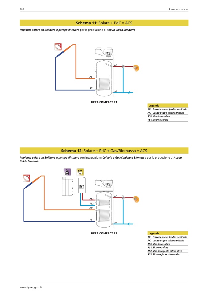 Impianto solare su Bollitore a pompa di calore con integrazione Caldaia a Gas/Caldaia a Biomassa per la produzione di Acqua
