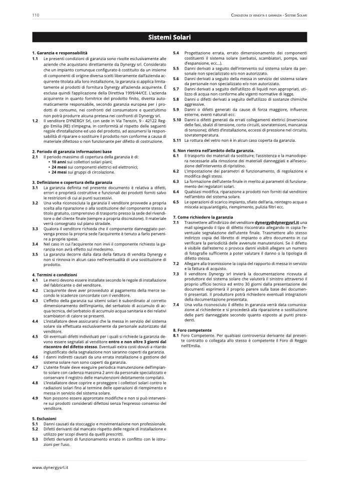 Condizioni di vendita e Garanzia - sistemi solari