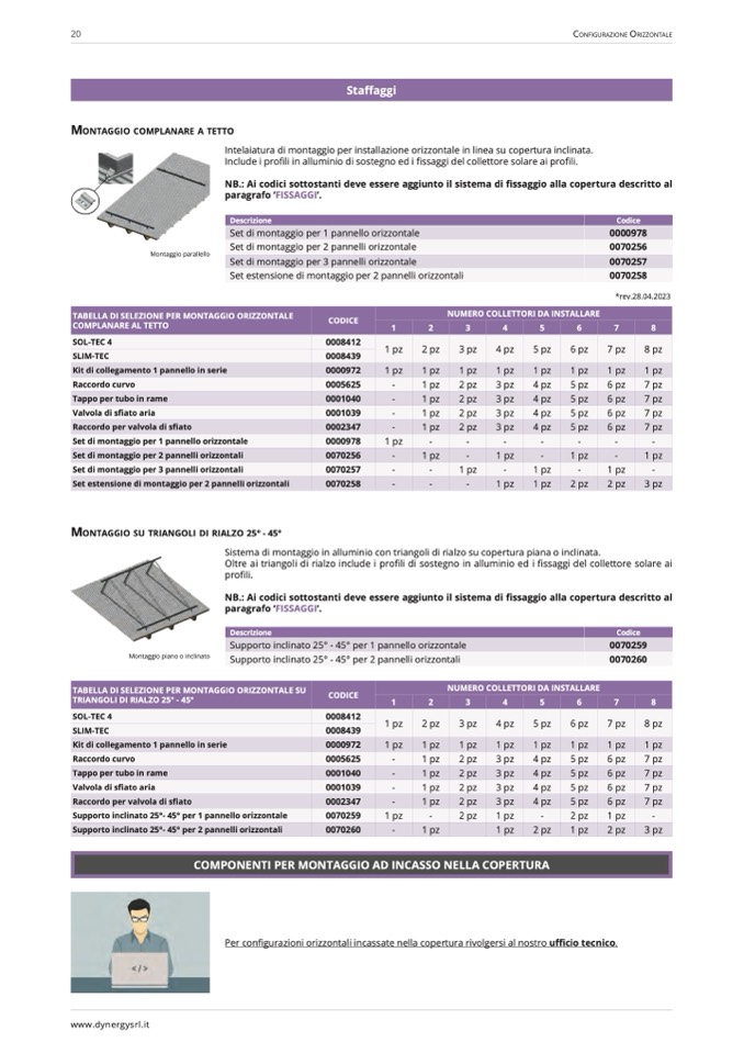 NB.: Ai codici sottostanti deve essere aggiunto il sistema di fissaggio alla copertura descritto al