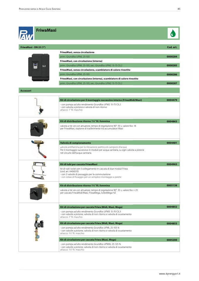 per cascata FriwaMidi/Maxi, FriwaMega, SolexMega HZ