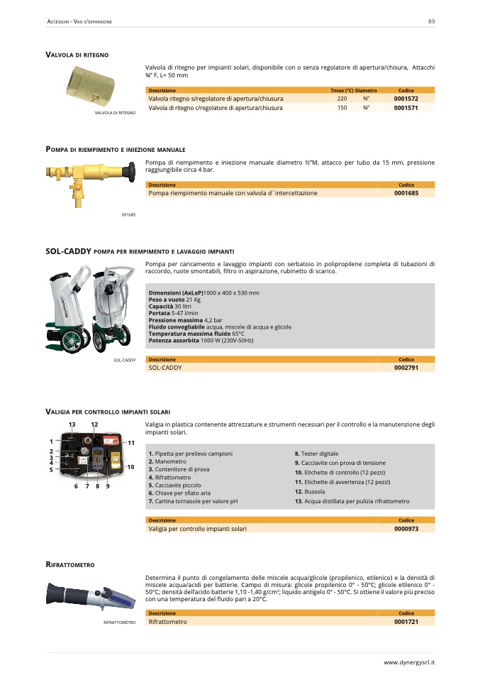 miscele acqua/acidi per batterie. Campo di misura: glicole propilenico 0° - 50°C; glicole etilenico 0° -