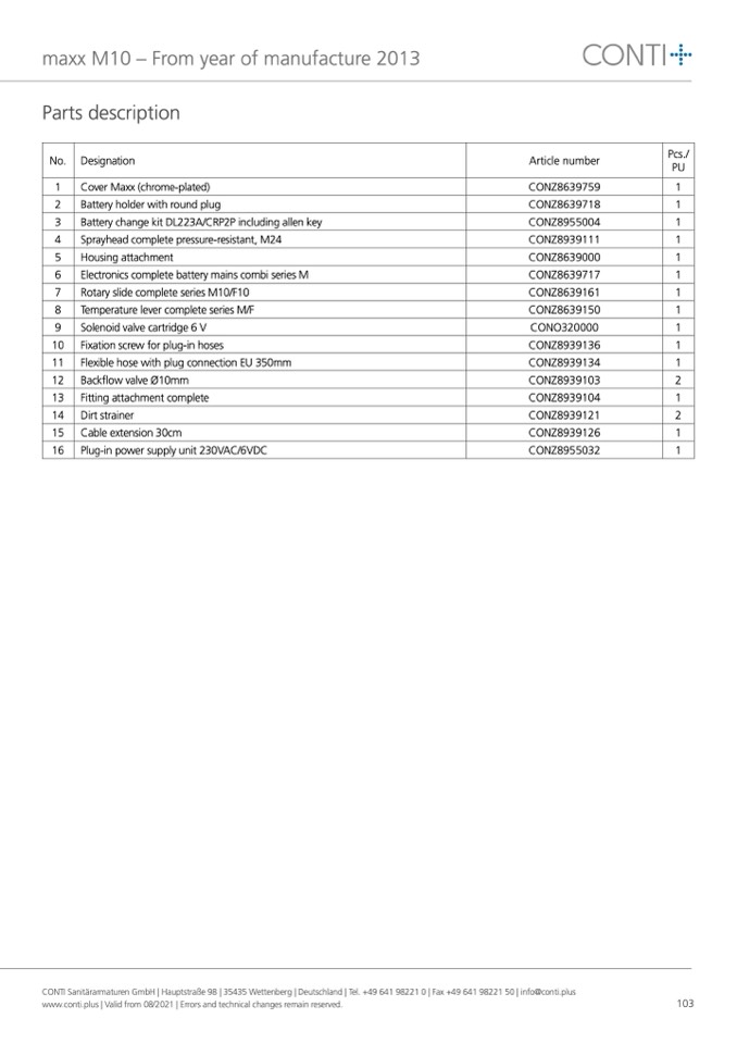 CONTI Sanitärarmaturen GmbH | Hauptstraße 98 | 35435 Wettenberg | Deutschland | Tel. +49 641 98221 0 | Fax +49 641 98221 50 | info@conti.plus
